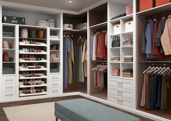 Creating a bespoke storage solution with Hammonds means you can choose exactly what you want, turning your walk-in wardrobe dreams into reality. Add mirrored wardrobe doors to keep your belongings tucked away or opt for a doorless option for a luxury look and feel. And, with pull-out shoe racks and counterbalance hanging rails, you can add the finishing touches to suit your own taste.