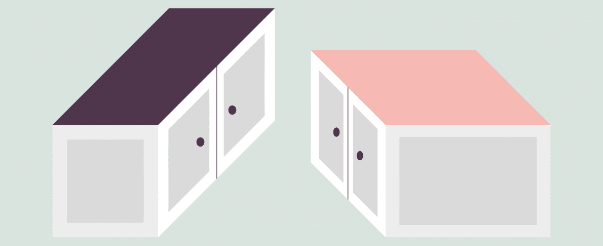 To most people the left cabinet with the purple top is a long thin rectangle, while the pink cabinet is more of a square shape. To the shock of many, both pieces of furniture are exactly the same shape and size.