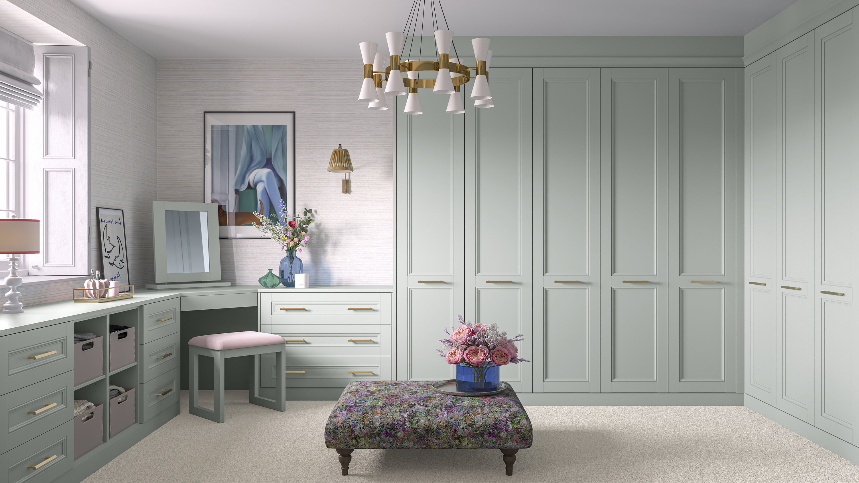 If you've got a busy family life, you'll want your dressing room to be a calm, tranquil space where you can relax and get ready for the day. So, it's best to keep things neutral.