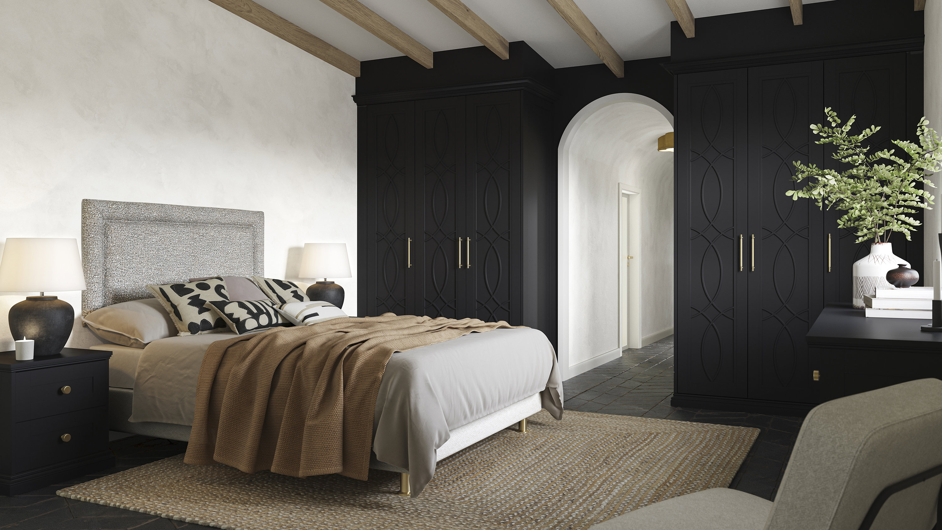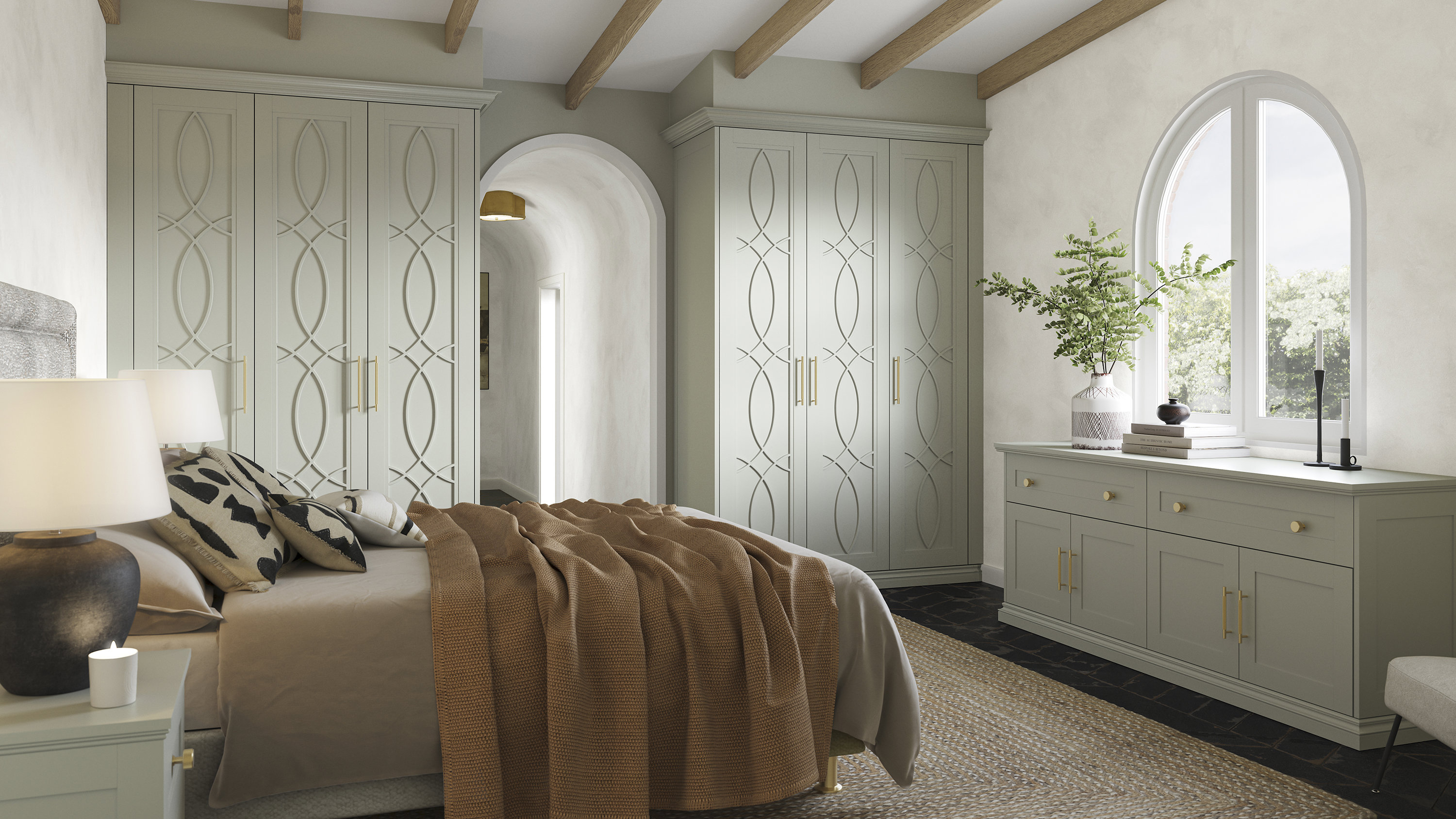 Our beautiful and practical selection of doors offer the perfect choice for spaces big or small, no matter your style. Angled doors embrace awkward sloped ceilings, so you can utilise every inch of space in converted lofts, alcoves and more. Bifold doors are ideal for smaller bedrooms in need of wardrobe storage – neatly folding up in half the space of a regular door. Mirrored doors are useful in bedrooms and dressing rooms, whilst effortlessly making spaces look bigger, reflecting natural light around the room. Fretwork doors adds statement to any room with an art deco feel.