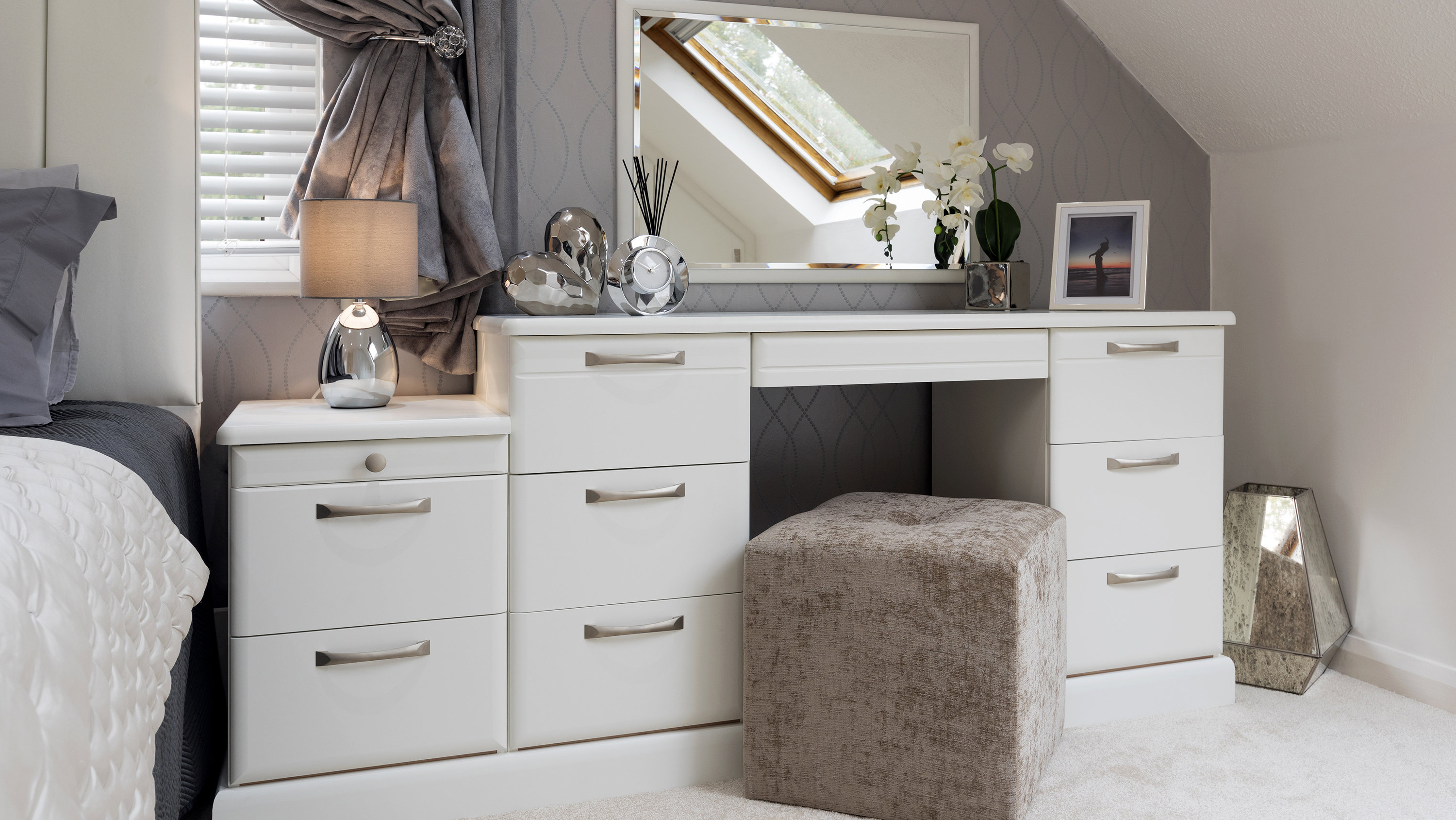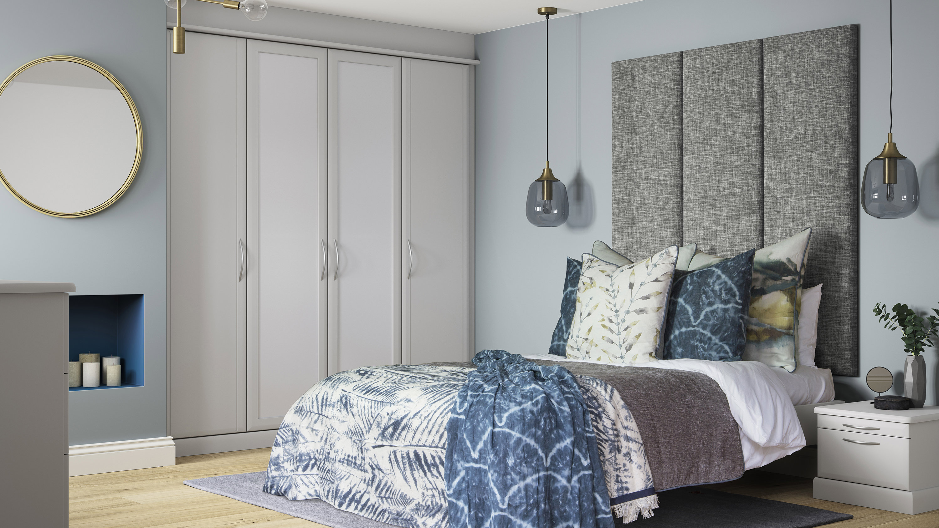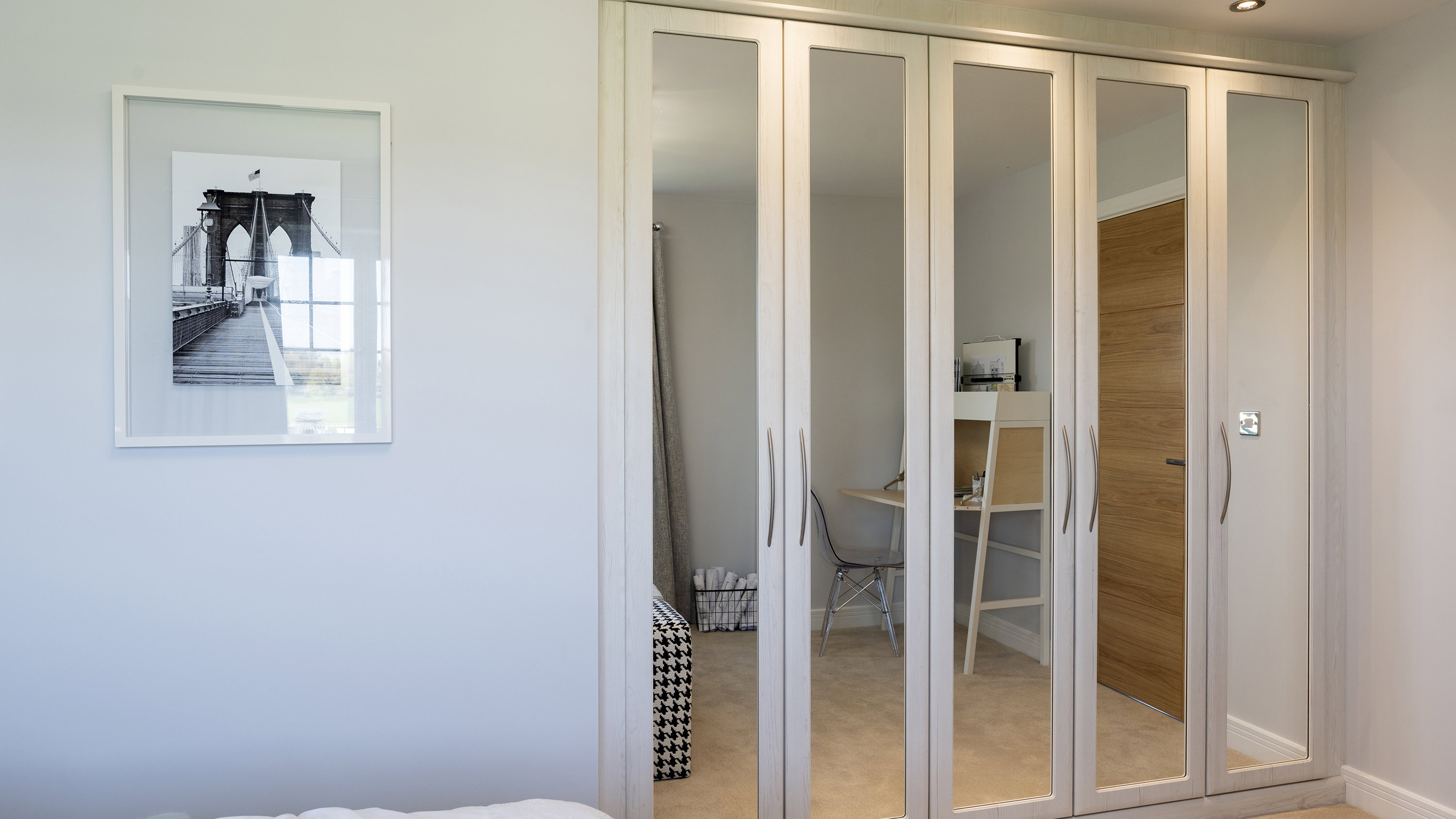 Our beautiful and practical selection of doors offer the perfect choice for spaces big or small, no matter your style. Angled doors embrace awkward sloped ceilings, so you can utilise every inch of space in converted lofts, alcoves and more. Bifold doors are ideal for smaller bedrooms in need of wardrobe storage – neatly folding up in half the space of a regular door. Mirrored doors are useful in bedrooms and dressing rooms, whilst effortlessly making spaces look bigger, reflecting natural light around the room.