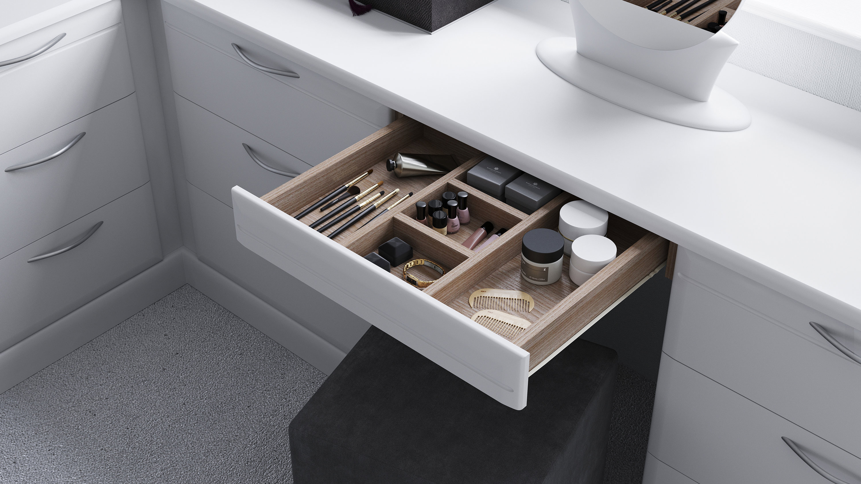 Soft-close as standardWe're not the only ones that offer 'soft-close' drawers, but our rivals only offer this on their exterior drawers. Hammonds offers 'soft-close' on both exterior and interior drawers.*