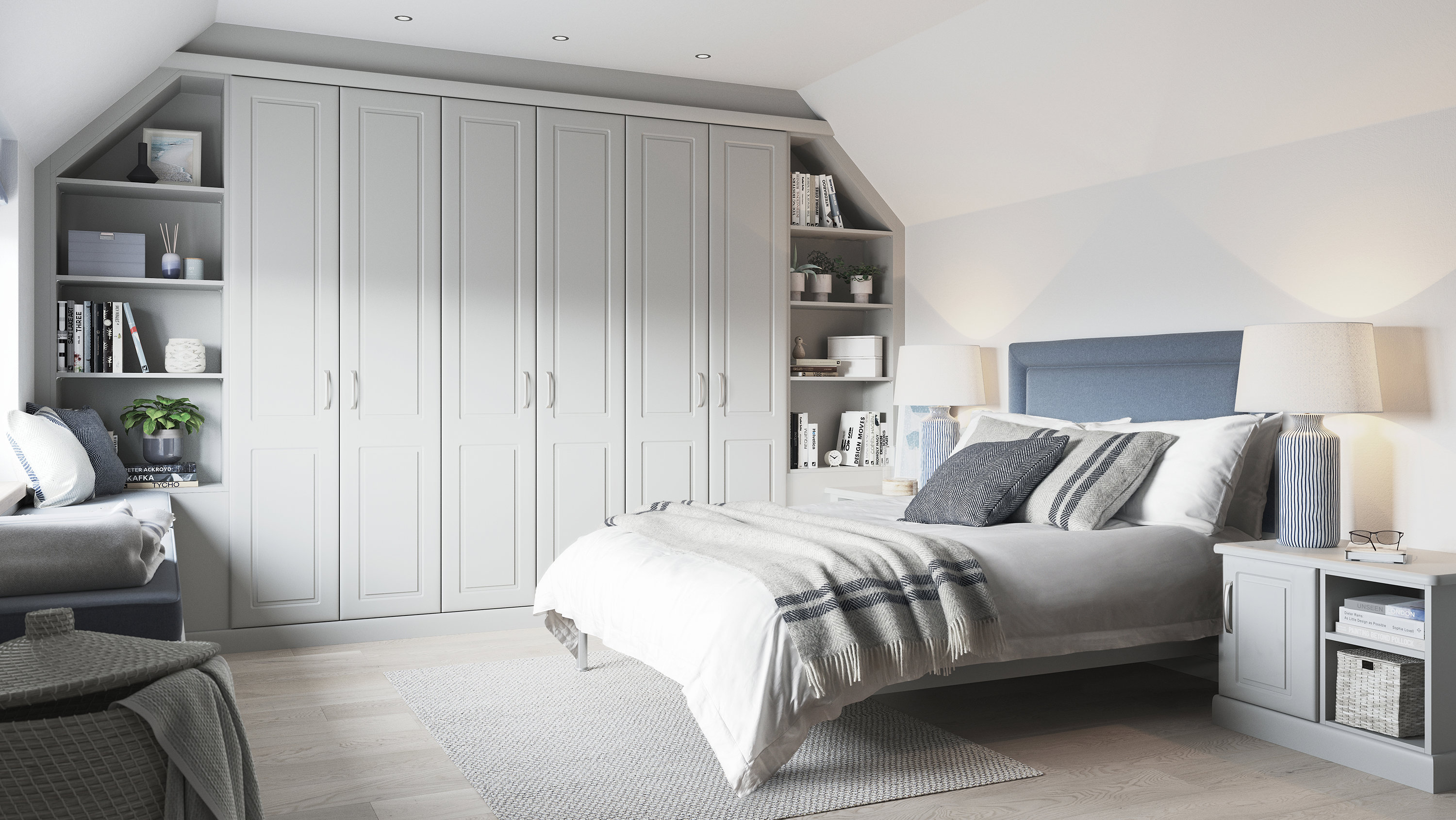 Our beautiful and practical selection of doors offer the perfect choice for spaces big or small, no matter your style. Angled doors embrace awkward sloped ceilings, so you can utilise every inch of space in converted lofts, alcoves and more. Bifold doors are ideal for smaller bedrooms in need of wardrobe storage – neatly folding up in half the space of a regular door. Mirrored doors are useful in bedrooms and dressing rooms, whilst effortlessly making spaces look bigger, reflecting natural light around the room.