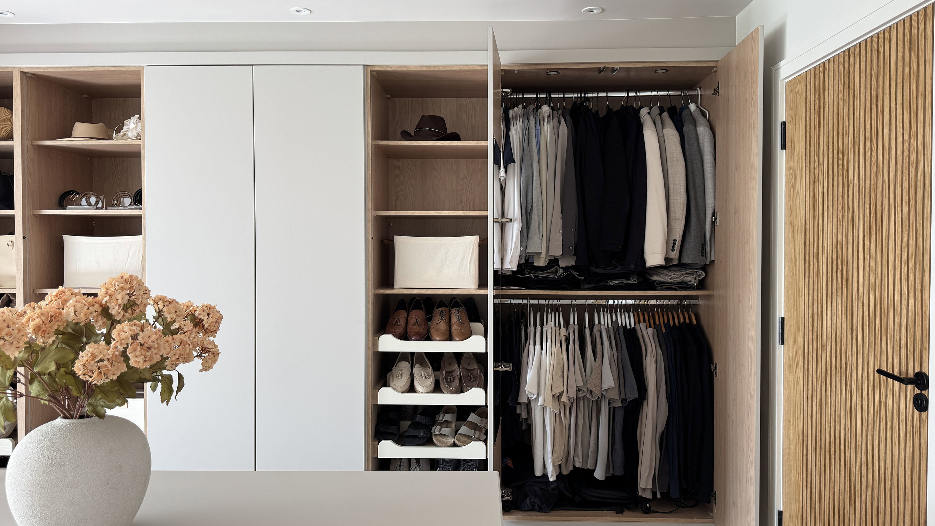 "I love a tidy and clean home so being organised is a priority for us. Having a wardrobe with plenty of space that we could personalise to our needs was perfect. We have a 'his and hers' side and my Husband has a different hanging - shelving ratio compared to my side. "